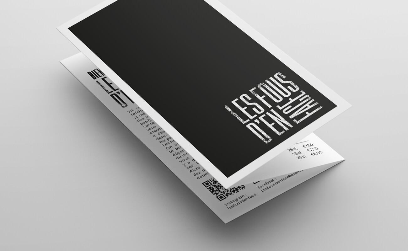 Création du logo, enseignes, cartes. Les Fous d’en face, bar de bien gentils gens avec chouette terrasse, Besançon.